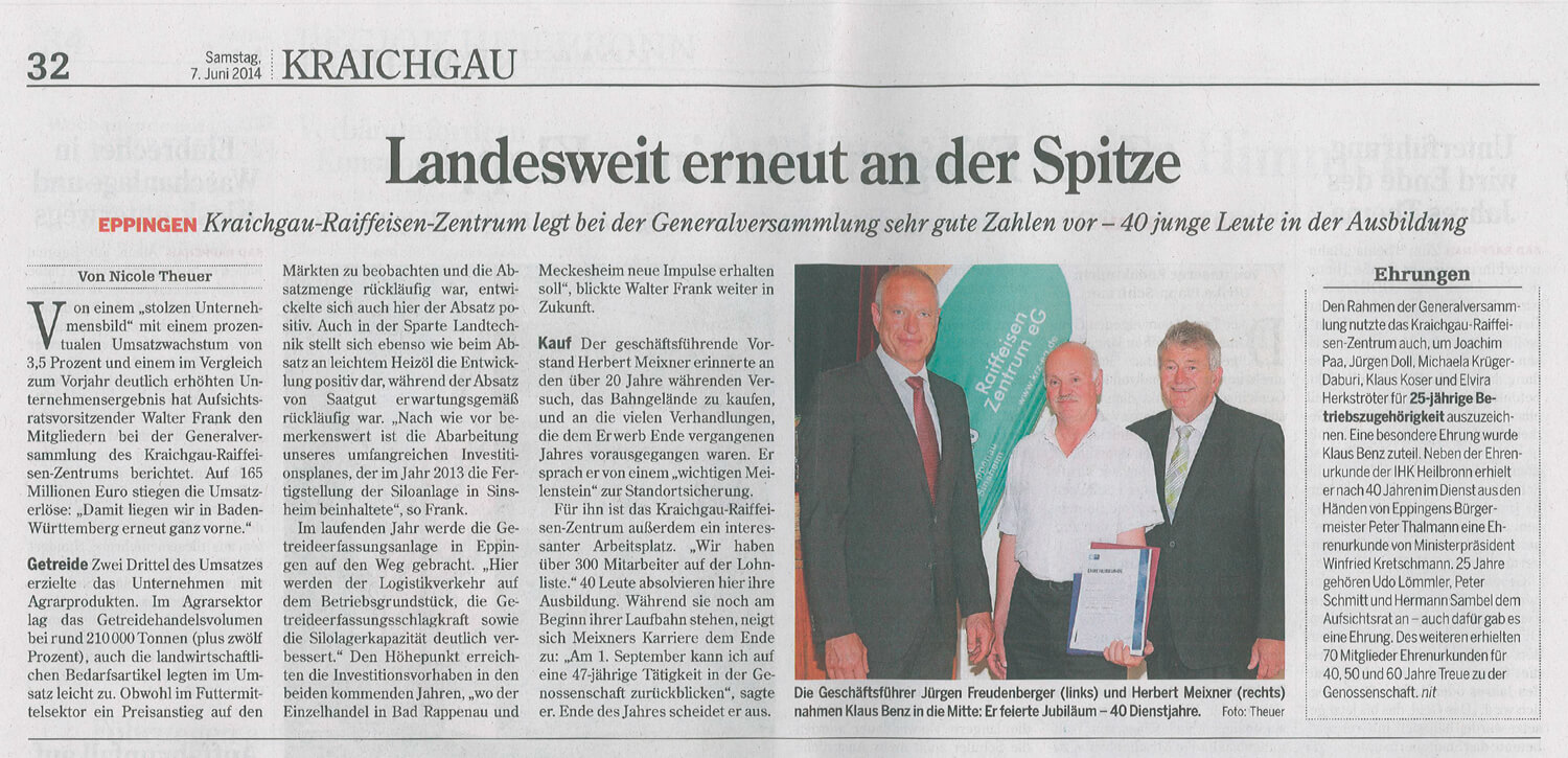 Generalbersammlung der Kraichgau Getreide Erzeugeremeinschaft (BWagrar, 07/2013)