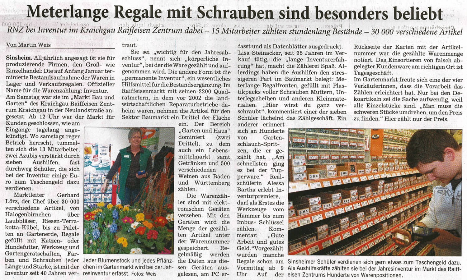Meterlange Regale mit Schrauben sind besonders beliebt (RNZ, 07.01.2013)